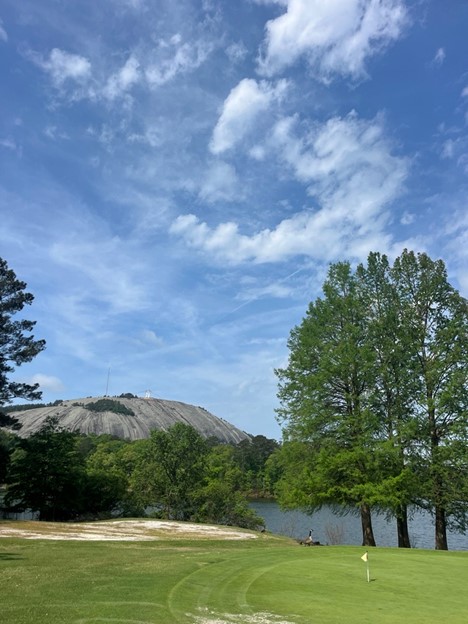 岩の麓にはState Parkが広がっており、湖でカヤックができたり、蒸気機関車が走っていたり、アミューズメントパークがあったり、ゴルフコースがあったり、と盛りだくさんの観光スポットとなっています!お子さんは大喜びになること間違いなしです。大人にもゴルフコースが36 Holeあり、湖の周りをまわるLakemontコースとゴロゴロと岩があるStonemontコースがあり、どちらもアトランタのSignatureコースと言っても過言ではありません!!特にLakemontは絶景です!