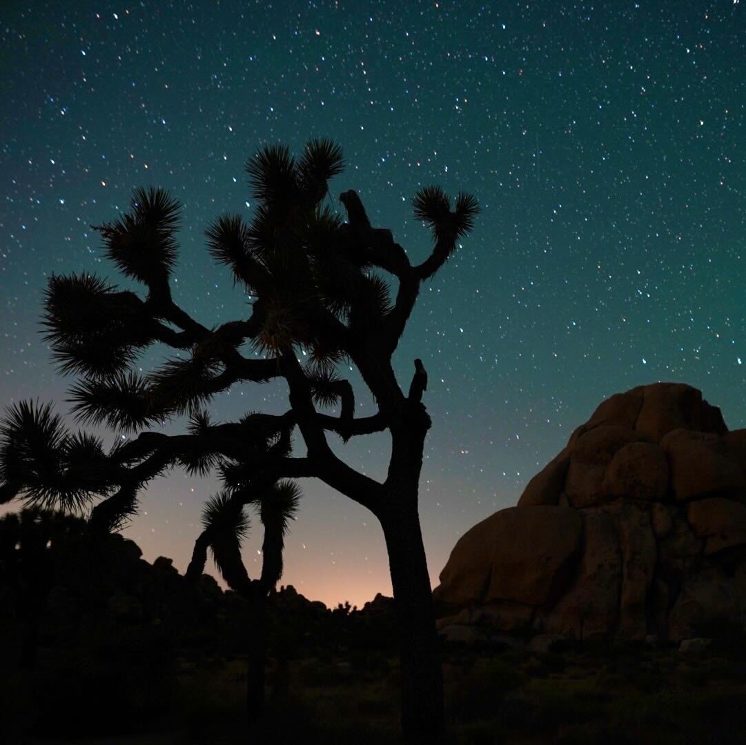 新月のキャンプ。星空とジョシュア。