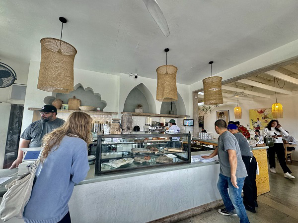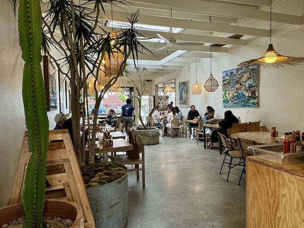 ご紹介するのはBlueysというお店。Venice Blvd沿いにあるこのお店は、前を通る度に行列が出来ているので、ずっと気になっていました。Blueysは、サンタモニカのお店と、このVenice Blvd沿いのお店の2店舗あるみたいで、主に女性のグループが経営しているカフェです。「ビーチライフスタイル」にインスパイアされたというお店の雰囲気は、爽やかなそよ風が漂うような心地よさで、とても落ち着けます。店内はその場で焙煎しているようなコーヒーの良い薫りで、こだわりが感じられます。Dog Friendlyで、わんちゃん連れのお客さんもたくさん見られました。