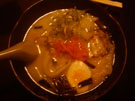 見た目はオーソドックスなとんこつラーメン。一口スープを飲むと、残念。パンチとコクがない。。。麺も固めを指定したにもかかわらず柔らかすぎで、コシもなし。期待していたチャーシューもパサパサ。これはお酒が入った後、味覚が狂っているときには良いのかもしれないが、ラーメン単体では勝負できない味だと思う。市販されているとんこつラーメンのスープとほぼかわらずというイメージ。
