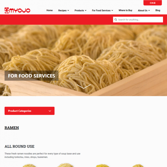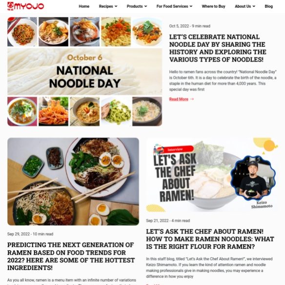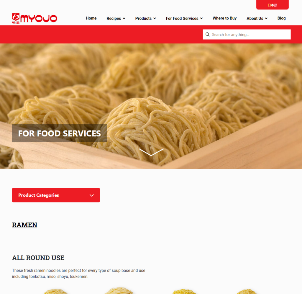1991年にアメリア市場へ進出して以降、着々とマーケットを広げてきたMyojo USAですが、オンライン・ウェブ上での認知・プレゼンスの低さが長年の悩みでした。特に、競合他社と比較して“Fresh Noodles” での検索結果順位や、ブランド認知、ウェブサイト上でのコンテンツ不足がネックとなっていました。こちらの課題を解決する為、ウェブサイトリニューアルに踏み切りました。