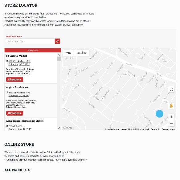 B2B/ B2C 両方のユーザーを意識したウェブサイト構成、コンテンツ作り・エンドユーザー向けにレシピページやブログを設け、更新性のある有益な情報を発信し、ユーザーの購入意欲を高めるコンテンツを提供。更にStore Locator機能を実装し、ウェブサイト上から各ユーザーのロケーションに応じてMyojo USA商品の取扱店を紹介、実店舗での販売促進に貢献。レストランやスーパー、卸売業などのカスタマーへ向けて、B2B向け商品の紹介、各商品から直接お問合せに繋げる仕組みを実装。各業界のリード顧客からのお問合せ増加に貢献。